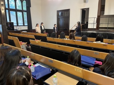 3コースに分かれ、文化服装学院、首都医校、日本女子大学を訪問しました(写真は大学コース)。