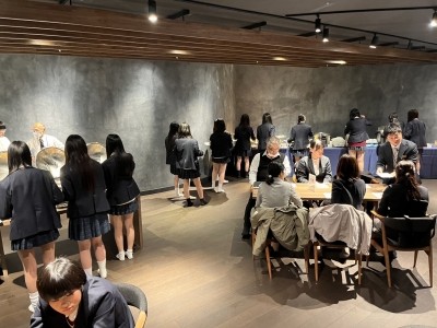 新宿で昼食を摂り、まずはコース別の上級学校訪問(文化服装学院、首都医校、日本女子大学)から。
