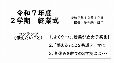 12月19日(金) 本校体育にて令和7年度2学期終業式が行われました。